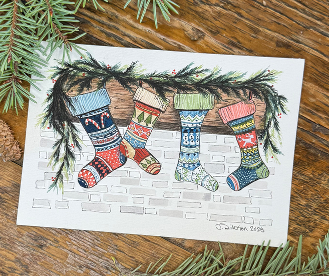 Each design began as an original watercolor painting, inspired by the beauty of winter and the joy of simple moments. From quiet snowy scenes to festive touches of red and green, these cards are designed to bring warmth and connection to your holiday season.